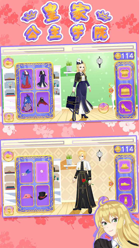 1、在这里你会作为一名学生,让自己成为一个合格的公主,快来给公主化装,体现她的高雅气质吧;