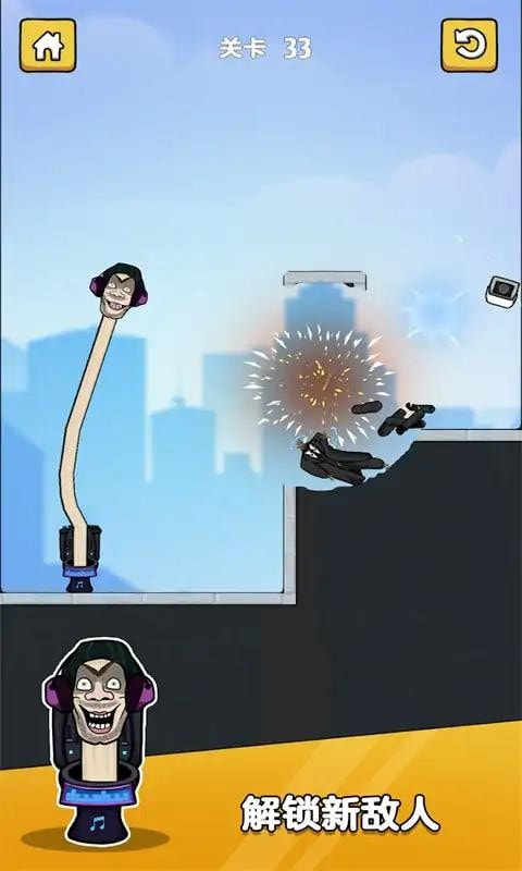 3、独特的人物角色:游戏中的角色马桶人非常有趣,通过利用马桶人的特殊能力和各种道具,解决各种难题和关卡。