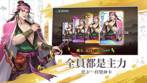 全剧情配音,精美spine生动演绎,100+美女侠客随心养。 特色养成系统让每位角色皆能独步江湖,成为你的顶级战力。