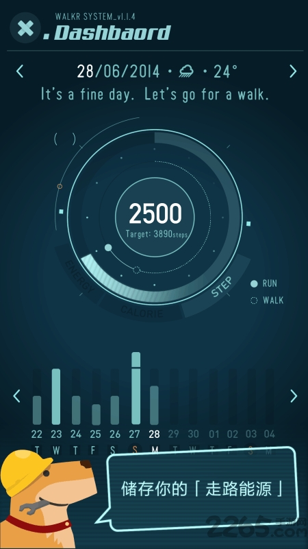 -Walkr也自动跟踪和记录你的热量燃烧量,建议每日健身目标,启动增压你的旅行者以飞船当你开始行走累积更多燃料。