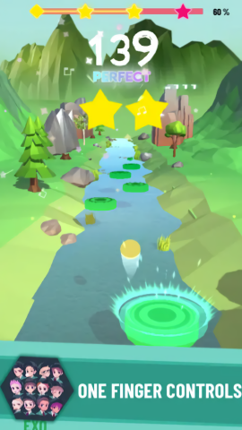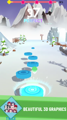 1、KPOP音乐跳球游戏是一款结合K-pop热门歌曲与节奏玩法的音游,玩家通过跟随音乐节奏,操作跳球进行挑战;