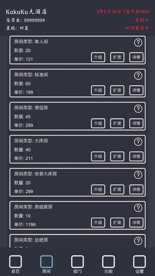 4、游戏采用了放置经营的模式,玩家能够经营自己的酒店,从小旅馆开始到五星大酒店;