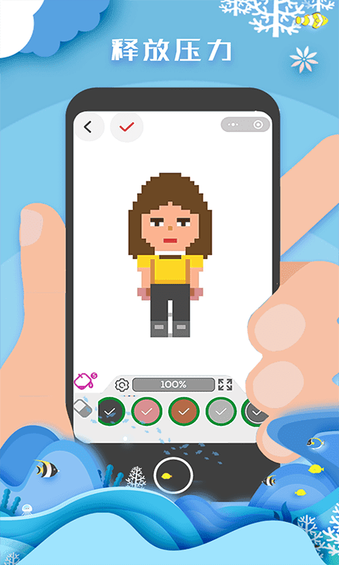 游戏的涂色玩法和像素风格很吸引人,玩家可以自由绘画,享受游戏的独特体验和乐趣。游戏中通过涂色和搭配颜色等方式,让玩家感受到奇妙的乐趣,各种不同的绘画主题一定会让你减压。通过完成游戏中的不同测试和挑战,玩家可以获得满意的绘画效果和游戏成就感。对于喜欢涂色和像素风格游戏的玩家,这款游戏非常值得尝试和推荐。