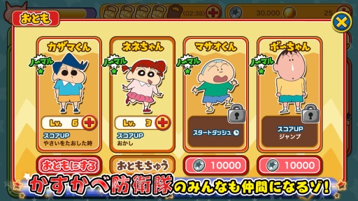 根据剧场版《呼风唤雨!夕阳下的春日部男》为主体的同名跑酷游戏,今天登陆啦!那个不爱吃青椒的美男子必须是主角啊!边跑边躲避障碍物,手机各种好吃的点心(为毛不是青椒!),游戏进行中,你还会看到剧场版中“春日防卫队”的小伙伴风间啊、正男啊、阿呆和妮妮也会相继遇到,并且可以作为额外加分呦!