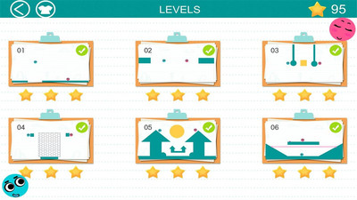 规则很简单,只要画线或各种形状来撞击球,让蓝色小球滚动到红球处就ok了。