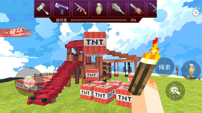 游戏中玩家将扮演一个世界破坏者的角色,通过手中的TNT爆破、破坏、空投、轰炸这一切,缓解日常生活中的各种压力;解锁更多的块和道具,彻底摧毁这个世界!