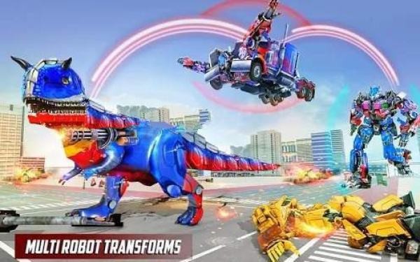 1、玩家将操控恐龙机器人进行战斗,可以自由切换不同的恐龙机器人形态,每种形态具有不同的攻击和防御能力;