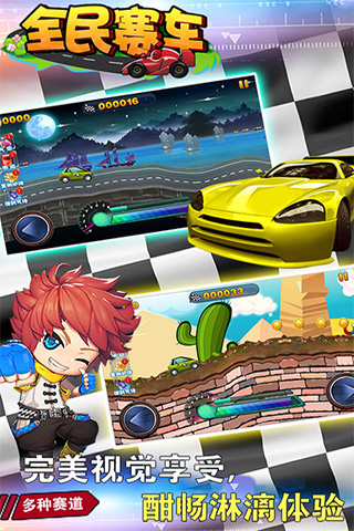 免费下载 大小:取消 下载:103次 全民赛车 大型赛车竞速类游戏 平 台:安卓 分 类:赛车竞速 大 小:取消 评 分: 语 言:中文 发 布:安卓狗 浏 览:103次 更 新:2026-04-18 06:53:40 手机扫码免费下载 纠错留言 #全民赛车介绍 全民赛车是一款由Q萌车型融合流行跑酷元素的趣味赛车游戏。包含糖果森林、天空城市、极地寒沐、沙尘满天和漂洋过海等五大赛道,险峻惊魂,时刻挑动你的神经,需要很高的平衡技巧通过令人兴奋的路障。操控车辆时,需要适时往复与加速,确保不要翻车或是被陨石击中,配合道具惊险过关,积累完美更换更高级的真实车型。 只需通过“左右”操作即可在赛道上享受疾驰的快感! #全民赛车截图