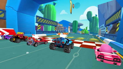 卡通的游戏画面非常的精致自由的解锁不同的赛车;