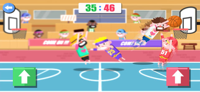 趣味双人篮球是一款幽默搞笑的篮球游戏,屏幕上的四个小人,为了争抢篮球而斗得不可开交。游戏的玩法非常简单,只需一键操作,就可以控制小人抢球,甚至会突然来一个帅气的大灌篮!而你的目标,就是想办法战胜对手的重重阻拦,率先拿下6分获得胜利。心动了吗?不要再犹豫,赶紧来一场精彩的较量,实现你的篮球大师梦!