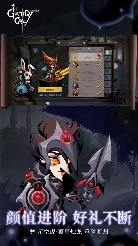 贪婪洞窟2官方版是由深圳雷霆信息技术有限公司原班人马打造的正统续作,大体玩法和初代一样进入地牢探索收集宝物,但是这次不会有自动回复也不能撤退了,只能直接与boss开战,要么干掉boss,要么被boss干掉,所有使用的武器材料都是从神秘洞窟中获得,可以用来提升作战实力。游戏有多种不同的难度,多达400层随机地形迷宫,还有60多种不同的怪物和boss,更有多达300多件随机属性可以收集装备等等,总之内容非常之多,玩法非常有趣,是不容错过的优质手游大作。除此之外,贪婪洞窟2官方版还支持与好友组队一起作战,更能体验到团队作战的乐趣,相比上代而言有更多的视野障碍和突然的陷阱,可能会对玩家探索产生更大的阻力,更具挑战性,但是奖励更加丰富,高风险高酬报,还有很多的隐藏道路和暗门,里面都有着丰厚的财宝奖励。所以这是一款宝箱与陷阱,危险和机遇共存的探索解谜游戏,喜欢这一类游戏的玩家莫要错过哦!