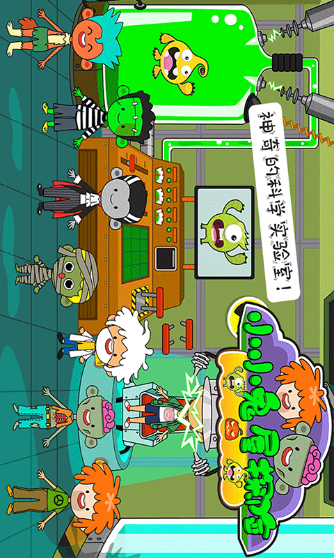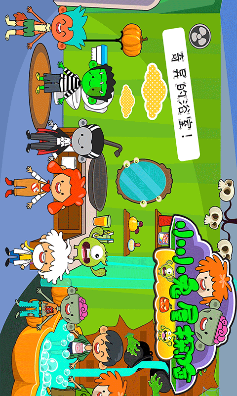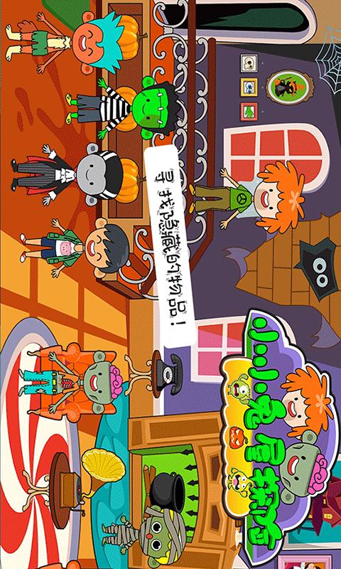 在鬼屋门口,我们种下各种糖果花,戴上奇怪的怪物面具和吓人的蝙蝠,轻敲门口的南瓜,你的表情就变了!进入房间查看客厅,发现房子的神奇秘密,甚至是特别的秘密实验室!