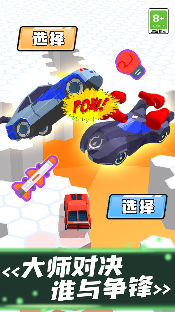 在这款游戏中你需要驾驶着赛车去和其他玩家进行竞争,只有站到最后你才能够成为赢家。