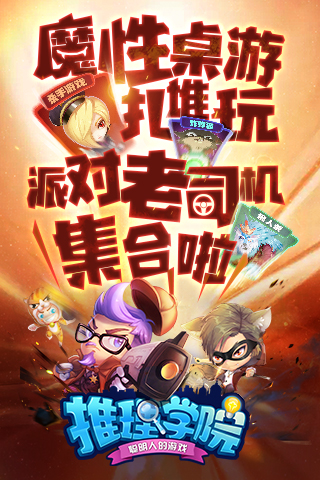 《推理学院》是一款集逻辑推理、休闲社交、多款经典桌游为一体的在线杀人游戏。创新式的推理狼人杀和天黑请闭眼杀人游戏,化身Q萌精致的动漫人物,和朋友们来一局真实的推理游戏!多样桌游,玩出经典不止是狼人杀!还集合天黑请闭眼、谁是卧底等高分逻辑推理桌游,多达二十多种角色和技能久玩不腻!十多种版本的游戏板子让你欲罢不能!你能在游戏中交友、拜师、创立家族以及和萌妹帅锅步入婚姻殿堂。Q萌角色人物,真实互动。数百种服饰搭配、宠物领养以及表情大作战丰富你的游戏体验!多达数百种讨好与整蛊道具让每一局游戏都能爆笑连连!