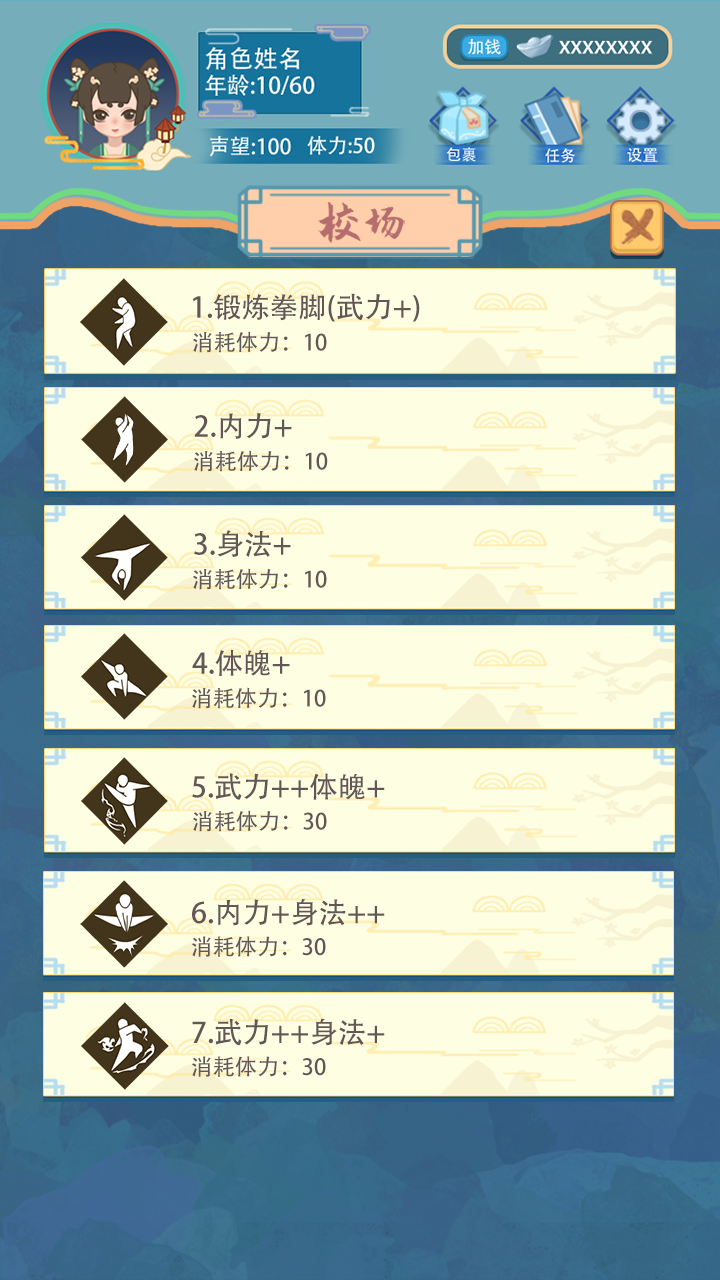 在你出生之后,可以自由选择每年要干啥,可以闯荡江湖拜师学技能。
