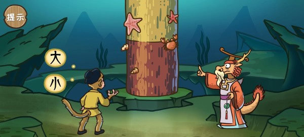 11.点击左边的树枝有一只蝉,然后将左边那人的油漆拖到蝉身上变身金蝉,最后将金蝉拖刀右边和尚的头上就能召唤唐僧进而解救悟空。