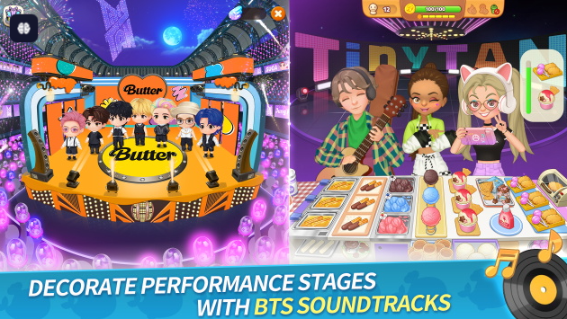 BTS料理王是一款充满趣味的模拟养成游戏,带你开启一场欢乐的美食冒险之旅!在游戏里,你将化身才华横溢的料理大师,驾驶着专属餐车,与超萌的 TinyTAN 携手,开启环球美食售卖之旅。在这个奇妙的旅程中,你会凭借精湛厨艺收获满满财富。用这些收入,解锁更多新奇独特的料理配方,不断丰富你的美食菜单,朝着料理王的梦想一路狂奔。制作料理的过程超简单,只需跟随游戏的清晰指引,轻松操作就能完成。