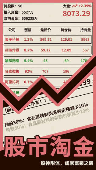不甘于现有业绩的你,还学会通过股票、投资、拍卖等方式玩转资本……