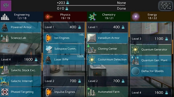 2.科技研究系统:游戏中有丰富的科技可以研究,不同的科技会给帝国带来不同的增益,玩家需要根据自己的策略选择合适的科技进行研究。