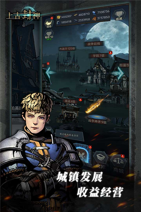 上古封神手游是一款全新的暗黑风格回合制RPG手游,游戏主线玩法为模拟经营与冒险战略,讲述了中世纪魔法世界亚瑟王沉睡在阿瓦隆之后的故事,在游戏中玩家将扮演这位传奇王者,建立发展自己的城镇,招募英雄,打败邪恶,组织远征军前往世界各地区进行探险。
