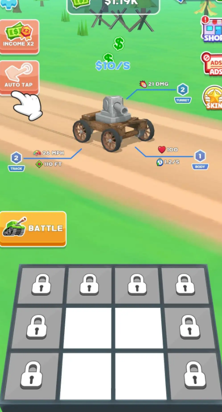 2、自由组装:通过收集各种零部件来组装自己的坦克,每个零部件都有不同的特性和效果,你可以根据自己的策略改装自己的坦克。
