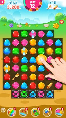 滑动手指,使三个或更多的相同颜色的糖果消除即可。