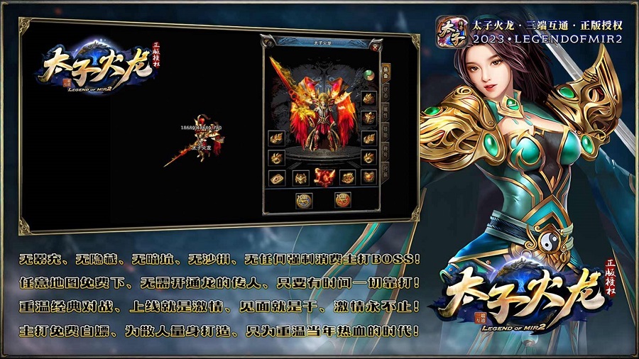 太子火龙传奇游戏最新下载一款原汁原味的复古传奇游戏。这款传奇手游提供了丰富的玩法内容,玩家能够在这个游戏世界中尽情享受丰富的内容,为了成为真正的勇者,玩家需要通过不断挑战各种怪物来提升自己的实力。在游戏中玩家将面对多种不同类型的怪物,包括骷髅、野猪、蝎子等。每个怪物都拥有独特的攻击和防御能力,挑战玩家的战斗技巧和策略。