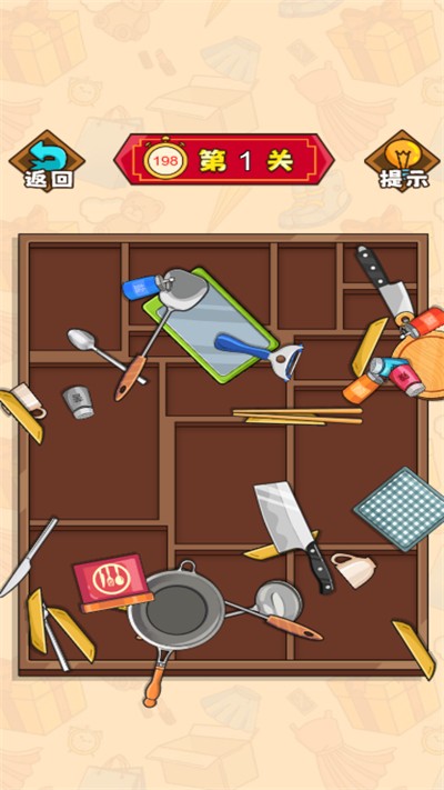 3、每层都有一个储物箱和各种不同的物品。玩家需要根据盒子的大小和物品的大小在指定时间内将物品放置在正确的位置,以完成关卡。
