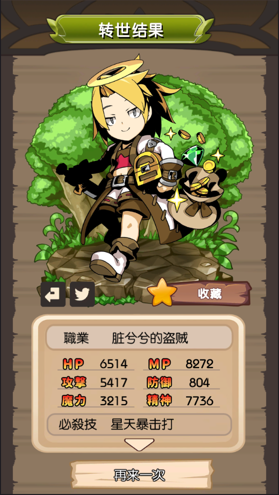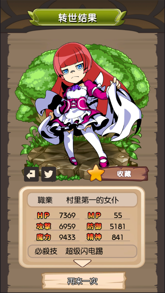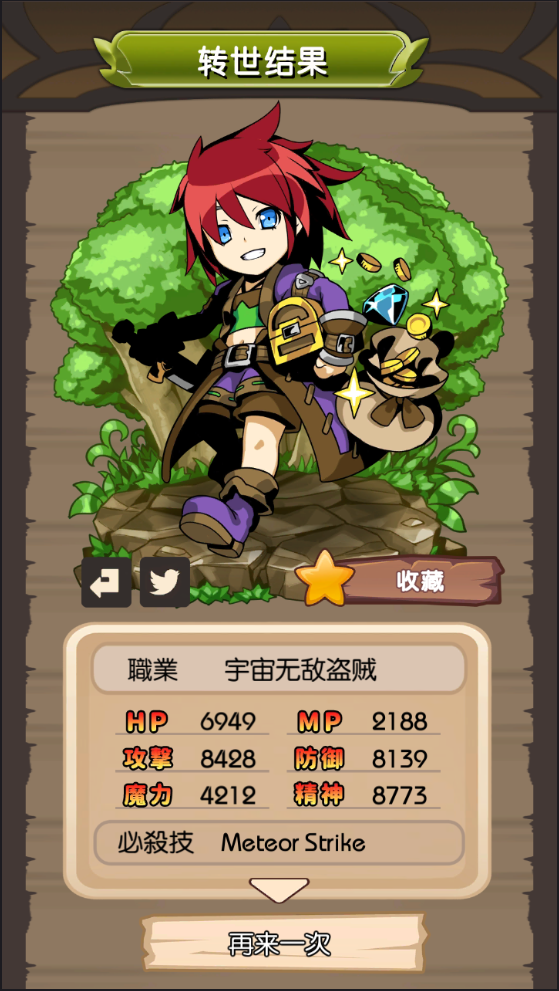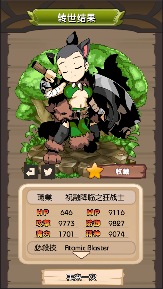 由于游戏无dll,文本和二进制混杂,部分系统UI与提示文本无法汉化,汉化会造成游戏崩溃,部分译文翻译也不够完美,请见谅。毎次转世完成后游戏会请你去谷歌商店评价,选右边那项不评价。游戏每天可以免费转世2次,之后再想继续游玩需要在跳出提示后选左边那项看一次广告,看完后就可以无限玩了。收藏位置只有2个,想要收藏更多转世结果也得看广告,不过第二次广告可能会看不了。