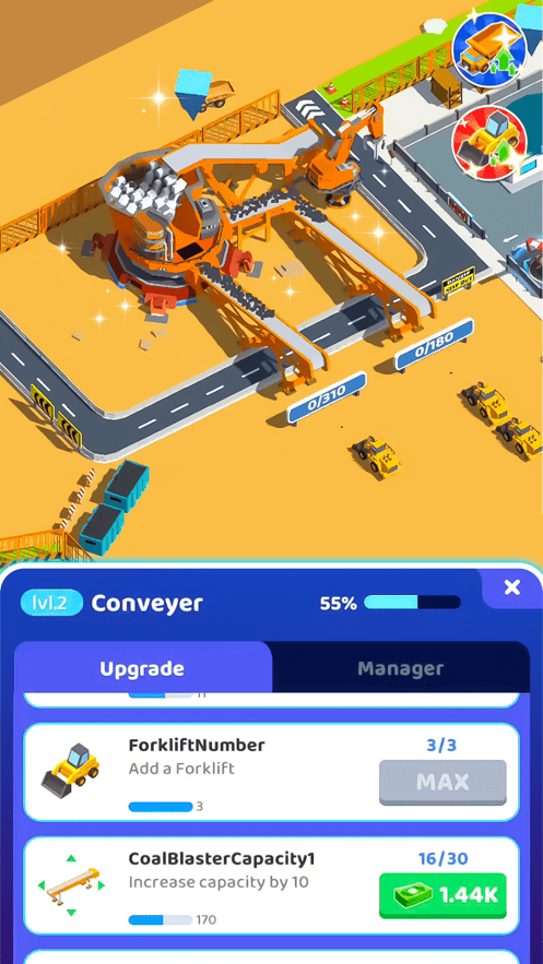 开采煤炭创造自己的煤炭商业王国,成为煤炭老板的游戏,不仅开采原煤,还建立工厂加工煤炭副产品,扩大煤炭生产基地,升级工业设备,提高工作效率,赚取更多利润,成为真正的煤炭巨头!