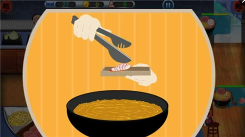 有趣的休闲模拟游戏《寿司拉面》这是一款十分好玩拉面店的模拟游戏,在游戏中你必须让你的顾客感到满意,让他们心甘情愿把钱给你,这样就能进入下一关哦!