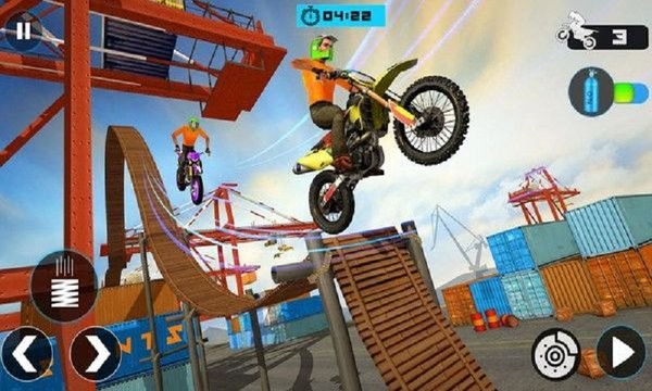 1、玩家需要通过精准的操作来完成特技动作,如空中翻转、前后轮跳跃等,并在规定的时间内完成赛道;