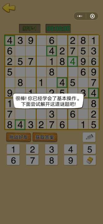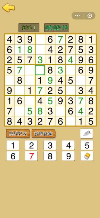 3、九宫格界面的每行、每列都有不一样的答案,不断演算找到数字的所有位置。
