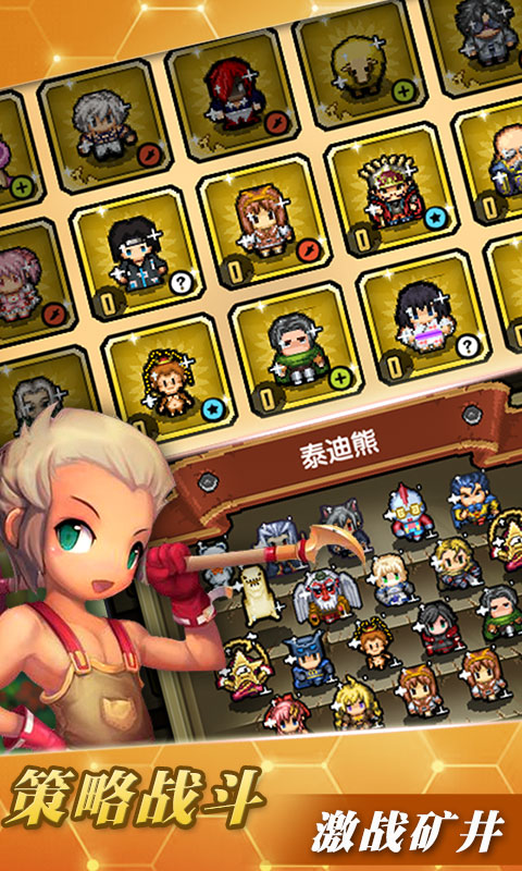 这是一款很有个性的像素挂机手游,游戏汇集动漫明星、游戏名角等数百位二次元经典形象海量的英雄! 除此之外英雄乱战、冒险闯关、地心挖矿等诸多独具创意且风格迥异的游戏玩法。流派丰富,四维属性演变千种策略,自由组合。无限挖矿、隐藏BOSS、神秘宝箱,独有无限矿区玩法,自己动手丰衣足食!