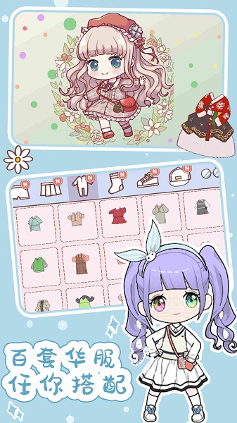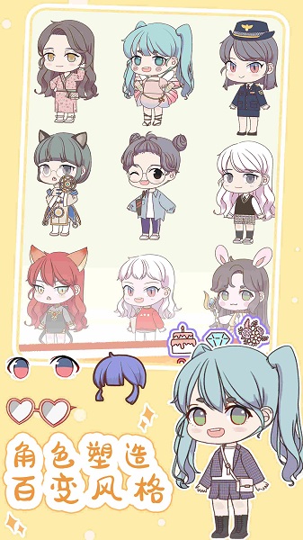 1.二次元换装游戏,服装款式多样,风格丰富,有多种发型、表情、肤色供你选择。