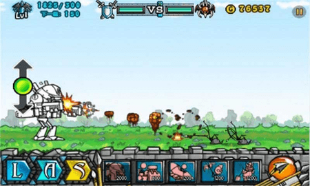 《卡通战争2》是一款横版塔防游戏,融合了即时战略和RPG元素,玩家需要策略性地布置卡通士兵,建造和升级防御设施,并亲自操控英雄来击败敌人。游戏画面虽然有些粗糙,但色彩鲜艳,操作也并不复杂。玩家可以不断升级自己的城堡和士兵,解锁新的单位和技能,挑战不同的关卡和模式。游戏可玩性极高,深受广大玩家的喜爱。快来下载体验吧!