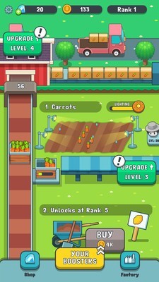 玩家将经营好自己的农场贩卖更多的水果蔬菜来赚取更多的金币,赚取的金币越多可以扩大自己的农场。