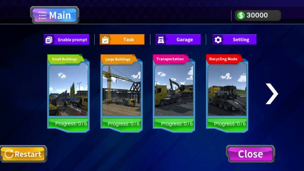 3、你选择你的任务开始游戏,还有对应的车辆。