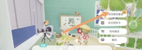 1、打开童话小镇,在宠物店楼上,找到贝莉,点击消息图标与其对话