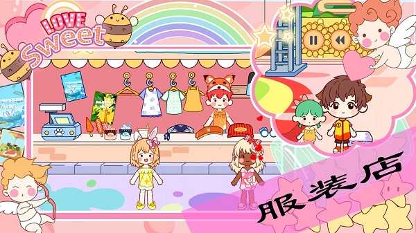 卡通和精致的游戏画风,提供很多场景,游乐园,服装店等;