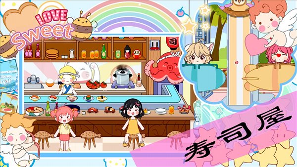 精彩有趣的游戏体验,包括各种区域,如寿司餐厅、商店等;