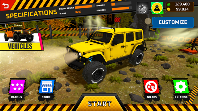 3、丰富的车辆选择:游戏中有50多辆精心设计的越野车,涵盖四轮驱动、卡车和摩托车,每辆车都有自己独特的性能特点。