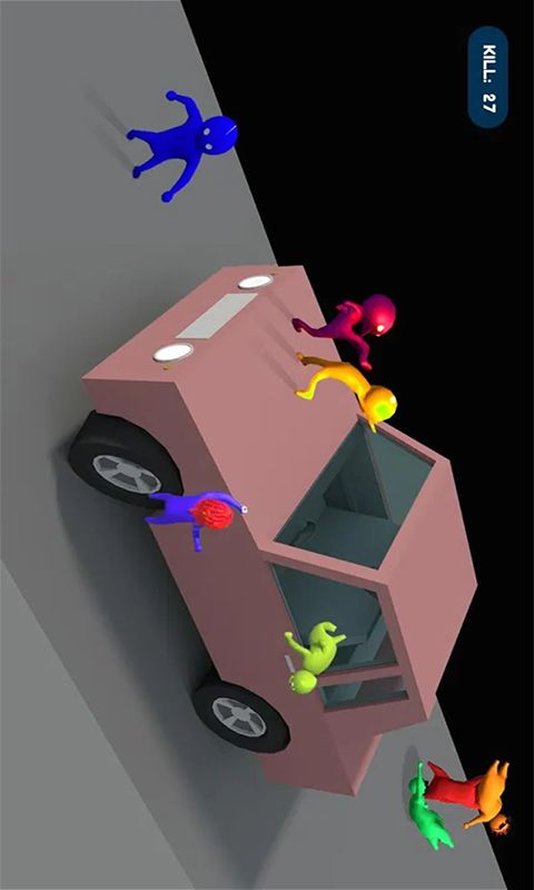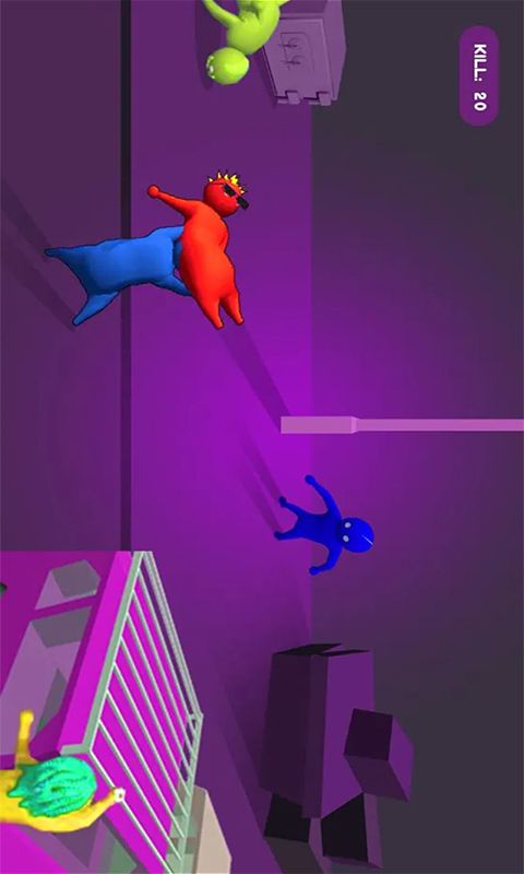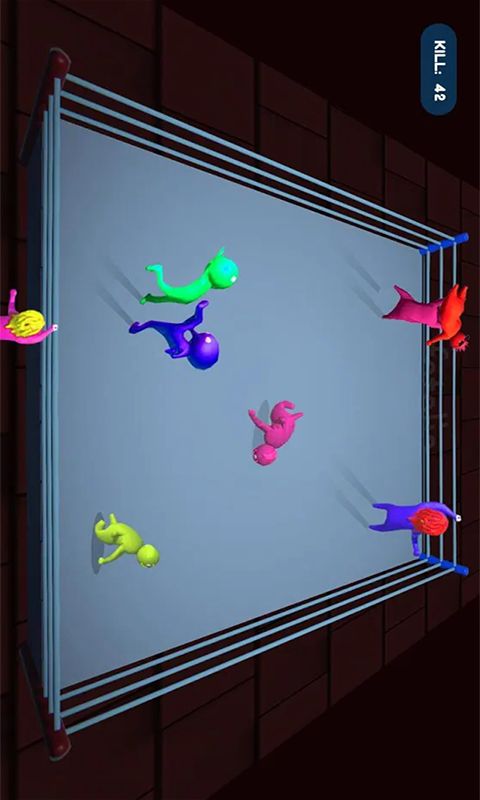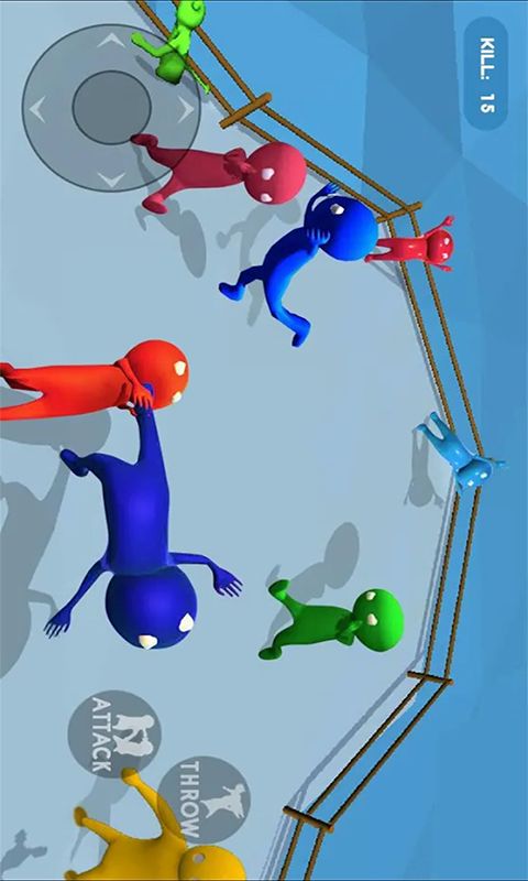 游戏中你操作的小人具有多种不同的动作可以施展,比如你可以很轻松的奖其它颜色的小人过肩摔。游戏的操作方向盘是左边采用虚拟的方式方向按钮,右边拥有两种不同的动作按钮点击就可以实现了。游戏的画质感很清晰,不用担心卡段现象。