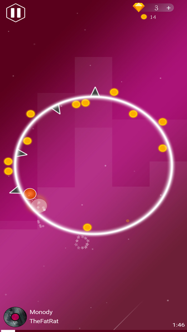 非常有节奏感的休闲街机手游《节拍滚动》推荐给大家,游戏中,玩家需要操控小球不断的滚动,在圆圈内外侧进行切换,避开各种障碍和尖刺,收集沿途的金币和星星,感兴趣的玩家快来下载吧!