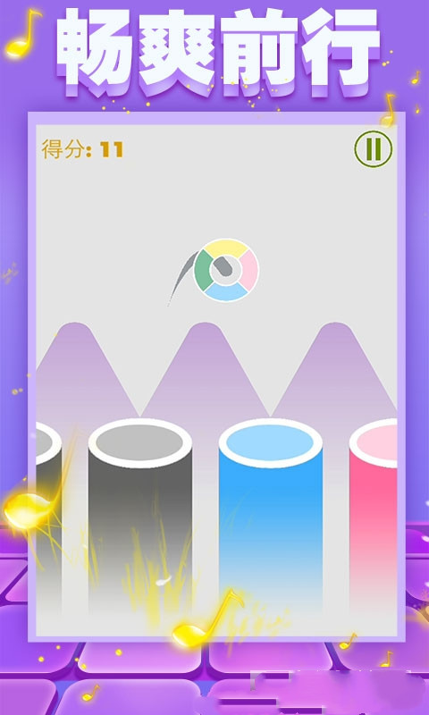 2、游戏主要考验的是玩家的节奏感与反应能力,滚动的过程中音符与落脚点的颜色互相对应也很重要。