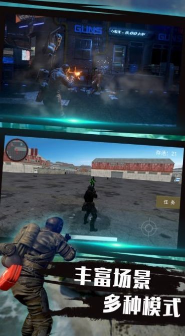 《战地枪战生存模拟》是一款非常好玩的射击类游戏,在这款游戏中玩家将会化身一名经验丰富的战士,通过利用自身出色的战斗技巧,来将场中的所有敌人怪物尽数解决,从而成功赢得战斗胜利,此外这款游戏中场景关卡也是非常丰富,并且每一关玩家面对的敌人和怪物都是不同的,玩家只有不断的提升自身的射击技巧,才能够更快消灭敌人赢得最终胜利。