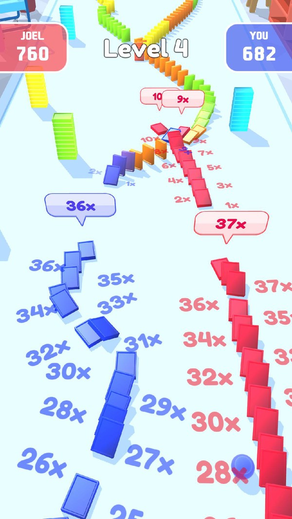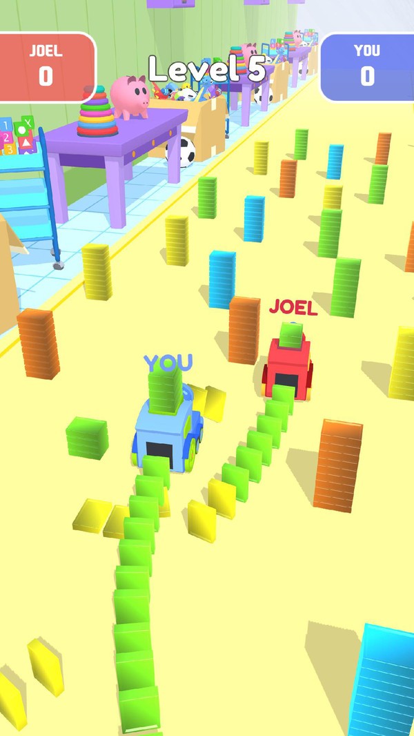 驾驶我们的小火车,不断的铺设更多颜色的多米诺骨牌。