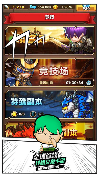 放置玩法,顾名思义就是即便你把战斗放在一边,在游戏里交友聊天,或甚至先把手机放下,去做其他的事情,也不耽误角色在游戏中获取经验值,道具和金币。