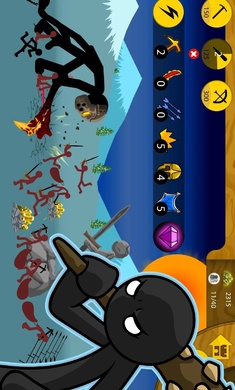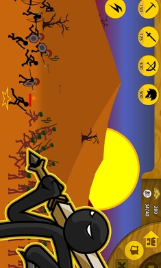 3. 面对敌人的攻击,你可以用你的棍棒军队消灭他们,在游戏中取得最终的胜利。