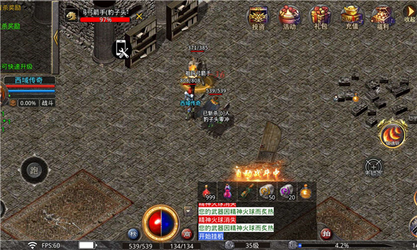 1、界面选用2D的复古风格,回归传奇初期的经典画面,让玩家重温开始的游戏体会。